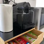 Questa struttura offre un angolo cottura con un microonde, un bollitore elettrico e un frigo, servizi per la preparazione di tè/caffè.